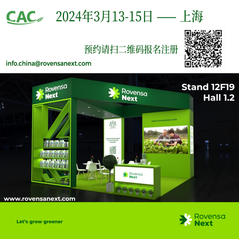在 2023 年 5 月 23 日至 25 日于上海举行的享有盛誉的第 24 届中国国际农用化学品及植保展览会(CAC) 上,Rovensa Next 中国公司取得了巨大成功。 超过40,000名专业人士和1,775家企业参加了此次展会,CAC成为了Rovensa Next展示尖端产品的最佳平台。